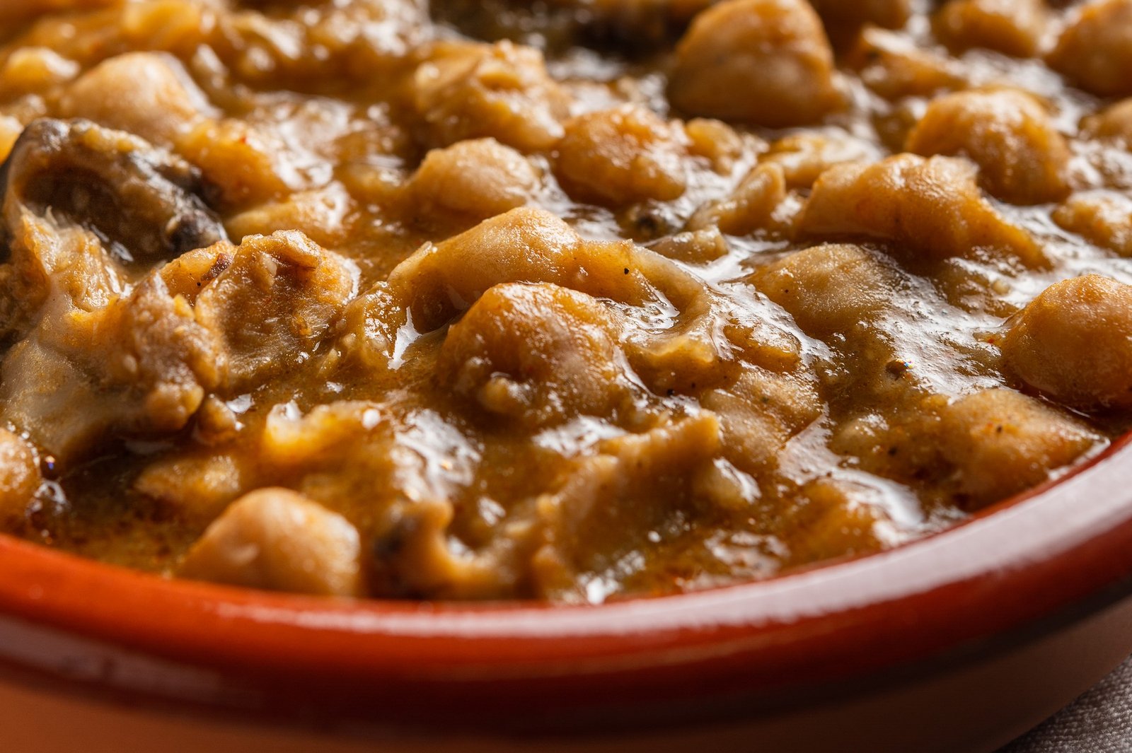 Contundente plato sin renunciar al sabor tradicional y mucho mas saludable. Receta muy enérgica, nutritiva y con gran contenido de vitaminas, minerales, fibra y proteína, por lo que se recomienda para llevar una dieta saludable. Los garbanzos tienen carbohidratos de absorción lenta por lo que nos mantiene saciados por más tiempo muy deseable en dietas de adelgazamiento y en pacientes con diabetes.