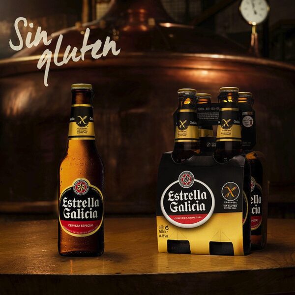 La nueva cerveza Estrella Galicia sin gluten, cuenta con el distintivo de la “espiga barrada”, que acredita que el producto está autorizado por la FACE (Federación de Asociaciones de Celíacos de España). Esta cerveza de color dorado brillante se obtiene a través de la aplicación de una enzima que rompe la cadena de algunas proteínas durante el proceso productivo, entre ellas, el gluten.